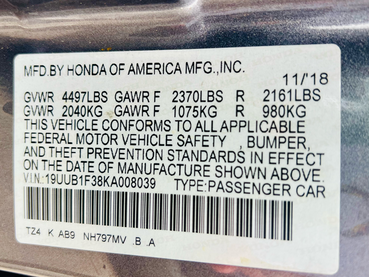 - 19UUB1F38KA008039